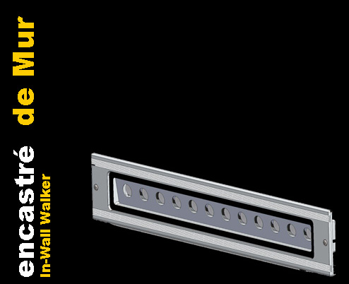 Product In-Wall Walker In-Wall Walker mono / bi / trichromy length : 655mm / 25,79'' height : 43mm / 1,69'' width : 115m / 4,53'' Type of leds : leds (Red, green, blue, amber, warm white,cold white) beam : 12°, 30, 50°, 12°x50° Data Sheep Brochure Product Guide